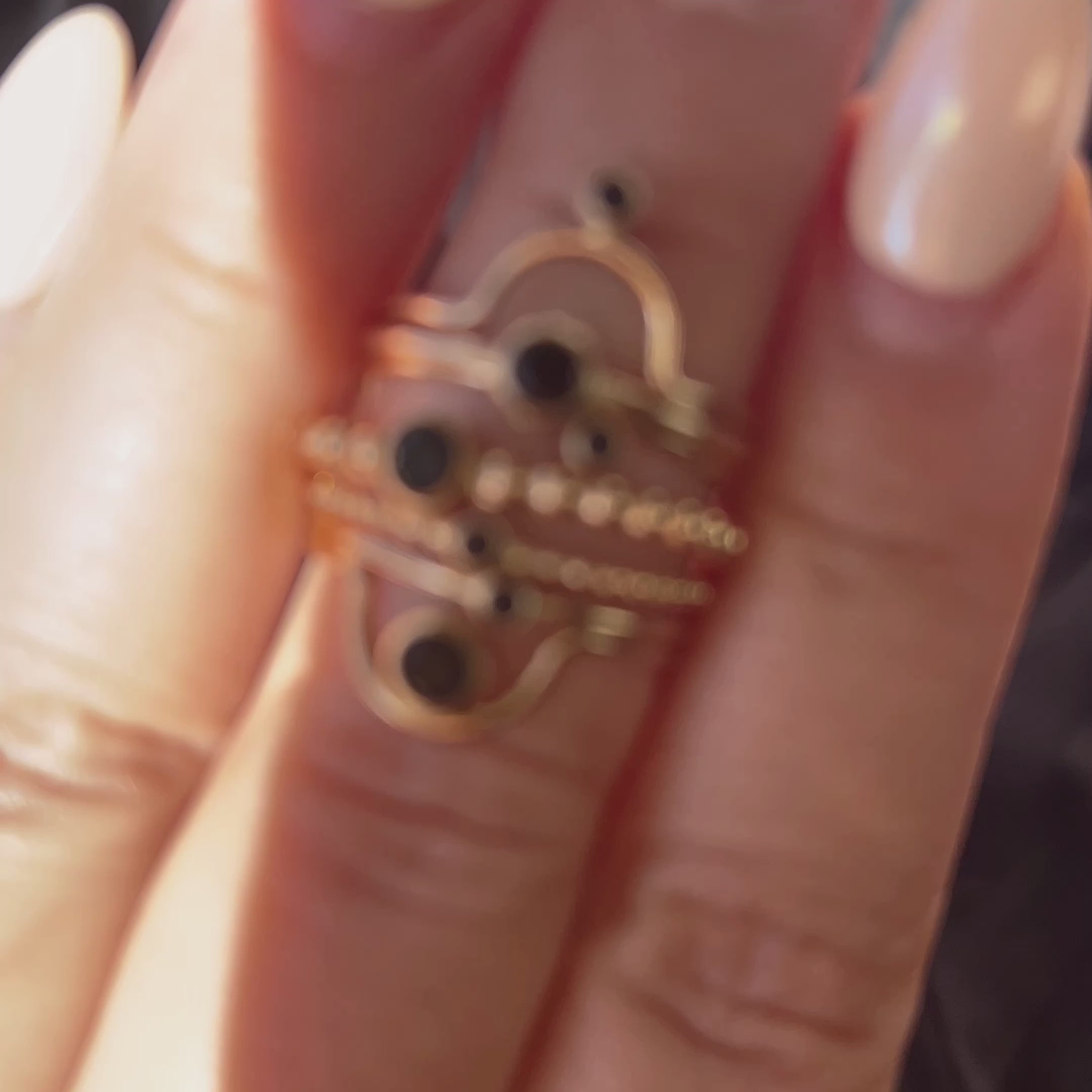 Unveil your inner enchantress with the Faye Ring. This dainty yet striking ring features a tiny black onyx gemstone, known for its powerful, protective energy. Set in a sleek band, the Faye Ring exudes an effortless elegance with a hint of dark mystique.